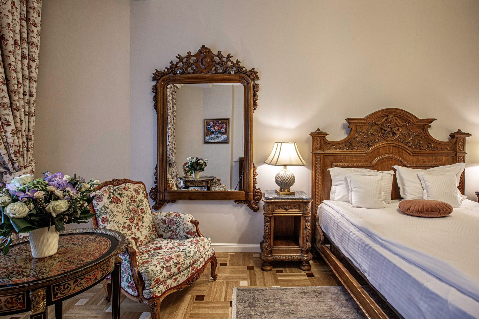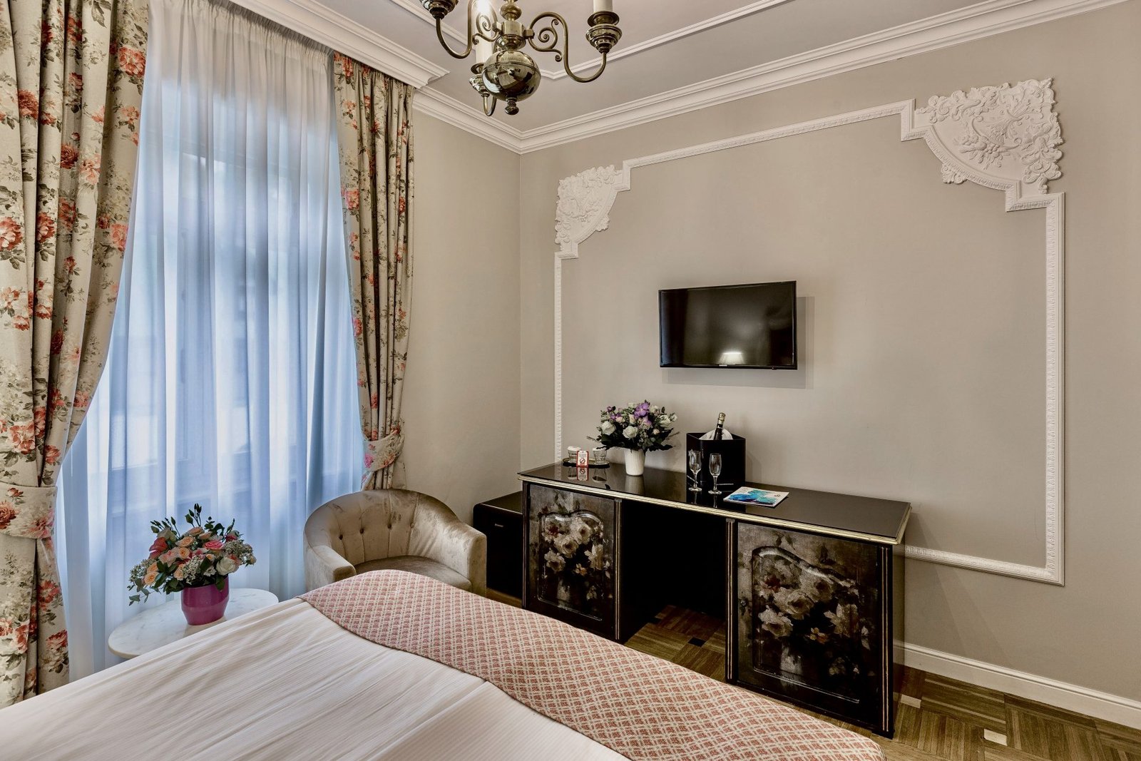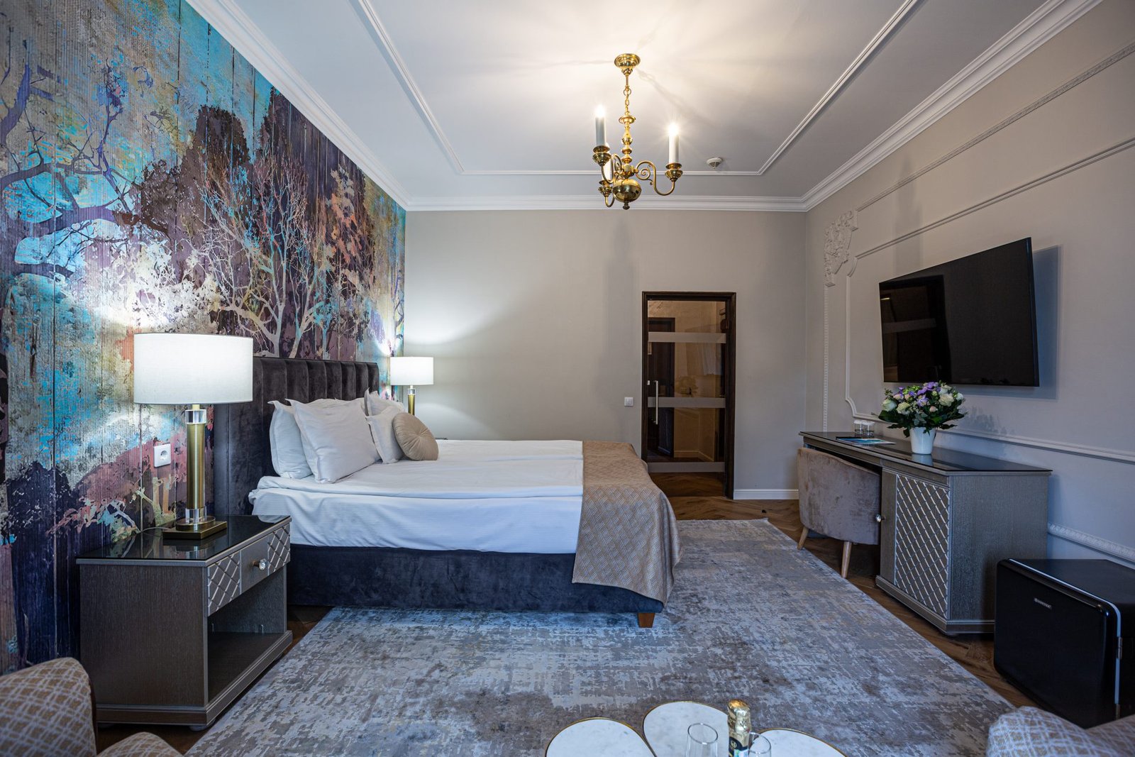 Camera Matrimonială Superior de la Hotel Palace Sinaia oferă un spațiu elegant, luminos și primitor, ideal pentru cupluri sau oaspeți care își doresc un plus de confort. Decorul clasic, patul matrimonial generos, liniștea zonei și atenția la detalii transformă această cameră într-o alegere perfectă pentru un sejur relaxant în Sinaia. Camerele Superior asigură atât funcționalitate, cât și rafinament, fiind perfecte pentru odihnă după o zi petrecută în stațiune, la plimbare sau la obiectivele turistice din apropiere.